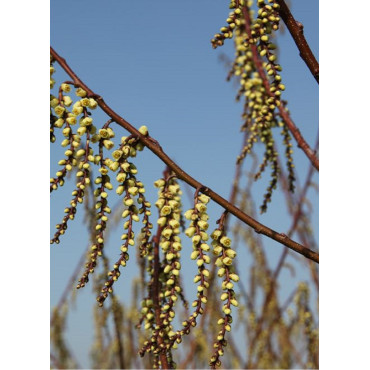 Le Stachyurus est un genre d'arbustes à feuilles caduques de la famille des Stachyuracées. Il comprend plusieurs espèces originaires principalement d'Asie de l'Est, notamment de Chine, de Corée et du Japon. Ces arbustes sont appréciés pour leurs fleurs pendantes et leur floraison précoce, qui ajoutent un attrait au jardin au début du printemps. Les arbustes Stachyurus ont un port dressé à étalé, atteignant généralement une hauteur de 1,5 à 3 mètres. Les feuilles sont simples, alternes et de forme ovale à lancéolée, avec une texture légèrement coriace. La couleur des feuilles varie selon les espèces, allant du vert vif au vert plus sombre. La caractéristique la plus remarquable du Stachyurus est sa floraison. Les fleurs sont produites en grappes pendantes, souvent en grand nombre, le long des branches. Elles sont généralement de couleur jaune pâle à jaune verdâtre, parfois avec des touches de rouge ou de pourpre. Les fleurs peuvent être légèrement parfumées et attirent les abeilles et autres insectes pollinisateurs. La floraison du Stachyurus se produit généralement au début du printemps, avant l'apparition des feuilles. Cela en fait une plante précieuse pour égayer le paysage pendant cette période de l'année où peu d'autres plantes fleurissent. Les fleurs peuvent être suivies de petites capsules contenant des graines. Ces arbustes préfèrent les emplacements partiellement ombragés à ombragés, mais ils peuvent tolérer une légère exposition au soleil. Ils prospèrent dans un sol bien drainé et légèrement acide, riche en matière organique. Un arrosage régulier et une couche de paillis autour de la base de la plante peuvent favoriser une croissance saine. En raison de leur attrait printanier et de leur facilité d'entretien, les Stachyurus sont souvent utilisés dans les jardins paysagers pour ajouter de la couleur et de l'intérêt aux bordures, aux massifs ou aux zones ombragées. Ils peuvent également être cultivés comme spécimens isolés ou intégrés dans des jardins de rocaille ou des jardins de sous-bois. En résumé, les Stachyurus sont des arbustes à feuilles caduques appréciés pour leurs fleurs pendantes et leur floraison précoce au début du printemps. Ils ont un port dressé à étalé et des feuilles ovales. Ces arbustes préfèrent les emplacements partiellement ombragés à ombragés et un sol bien drainé. Leur utilisation dans les jardins paysagers ajoute de la couleur et de l'intérêt aux aménagements.