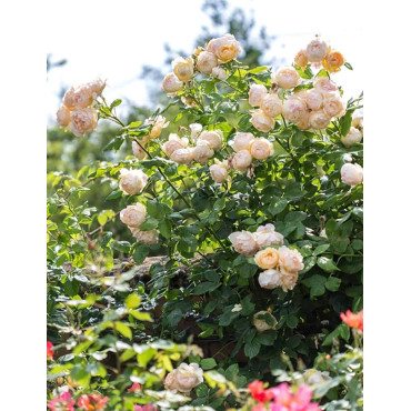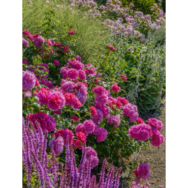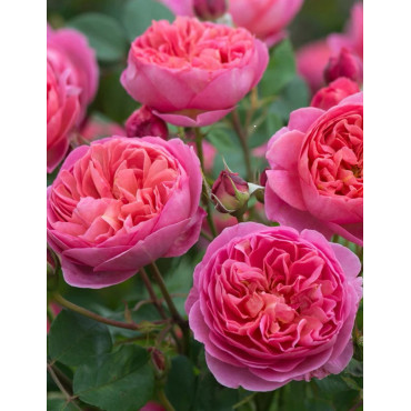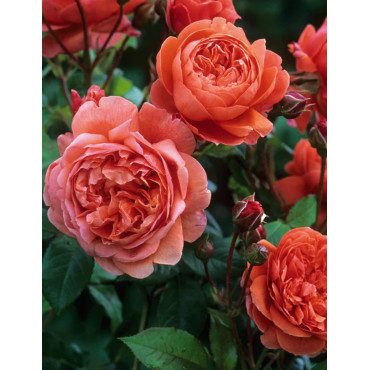 Les rosiers anglais, également connus sous le nom de rosiers David Austin, sont une catégorie spéciale de rosiers hybrides créée par le rosiculteur anglais David Austin. Ces rosiers sont réputés pour leur apparence qui rappelle les roses anciennes tout en incorporant des caractéristiques modernes. Les rosiers anglais sont appréciés pour leur apparence traditionnelle et souvent pour leurs fleurs qui rappellent celles des roses anciens. Ils combinent des formes de fleurs classiques avec une large gamme de couleurs. Ils sont généralement remontants, ce qui signifie qu'ils peuvent produire des fleurs à plusieurs reprises tout au long de la saison de croissance. La floraison abondante est une caractéristique clé de nombreux rosiers anglais. Beaucoup de rosiers anglais sont connus pour leur parfum riche et envoûtant. Le parfum est souvent décrit comme étant sucré, fruité ou épicé. Certains rosiers anglais ont un feuillage attrayant et sain, ce qui contribue à leur attrait esthétique. Le feuillage peut être vert foncé et brillant. Les rosiers anglais peuvent avoir un port buissonnant et s'étaler largement. Ils sont souvent utilisés dans les jardins formels, les massifs de fleurs et les bordures. En raison de leur apparence traditionnelle et de leur parfum captivant, les rosiers anglais sont populaires pour les jardins de cottage, les jardins traditionnels et les espaces où l'on souhaite ajouter une touche romantique. Comme la plupart des rosiers, les rosiers anglais prospèrent généralement en plein soleil et dans un sol bien drainé. Ils peuvent nécessiter une taille régulière pour encourager une croissance saine et une floraison continue.