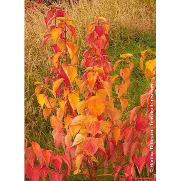 Le VIBURNUM plicatum GRANDIFLORUM® (Viorne du Japon) est sans doute l'une des plus belles viornes. Cette variété se distingue par sa floraison en gros corymbes blancs légèrement rosés, rappelant celle du V. opulus, mais sur une plante encore plus élégante. Son port est touffu, arrondi et luxuriant, avec une floraison plus précoce, plus abondante et plus blanche, évoquant certains hortensias boules. À l'automne, son feuillage caduc prend des teintes chaudes et somptueuses dès septembre, ajoutant à sa beauté. Pour s'épanouir, cette viorne majestueuse nécessite un sol frais, bien drainé, et de préférence non calcaire.